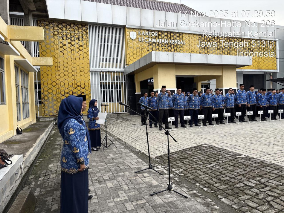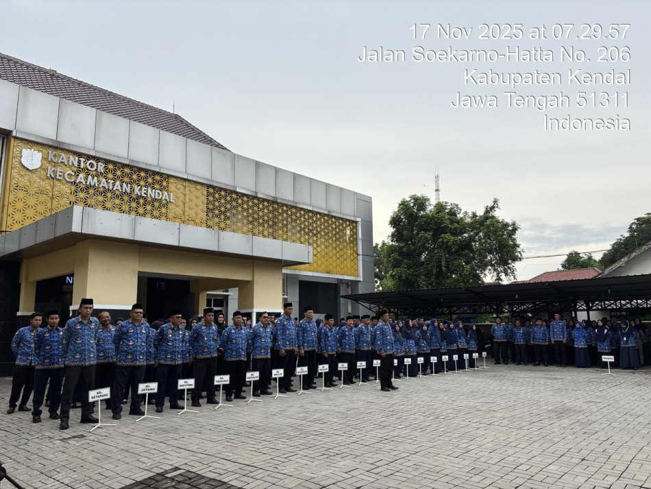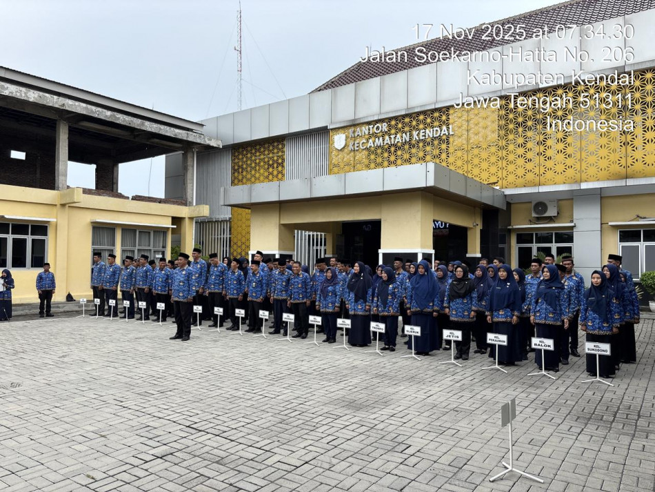 Senin tanggal 17 November 2025 pukul 07.30 Wib s/d Selesai. Telah dilaksanakan Apel bersama seluruh OPD yang ada Diwilayah kecamatan Kendal. Kegiatan apel dilaksanakan di Halaman Kantor Kecamatan Kendal Kabupaten Kendal.