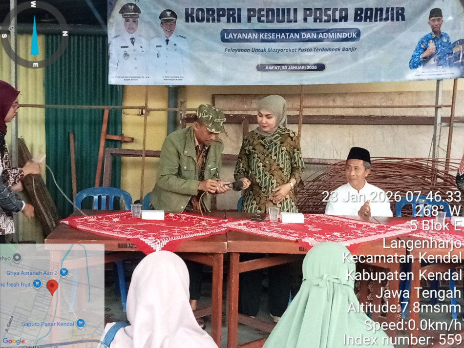 Di tengah kondisi tersebut, KORPRI Kabupaten Kendal di bawah komando Bapak Abdul Basir, SH. menyalurkan bantuan berupa kebutuhan pokok sehari- hari (sembako, sayur mayur,layanan kesehatan gratis serta layanan administrasi kependudukan kepada warga masyarakat dengan harapan masyarakat bisa "terobati" akibat dampak luapan banjir beberapa hari yang lalu.