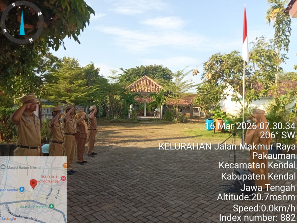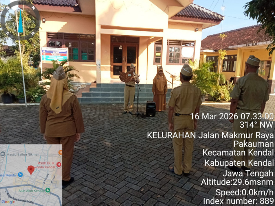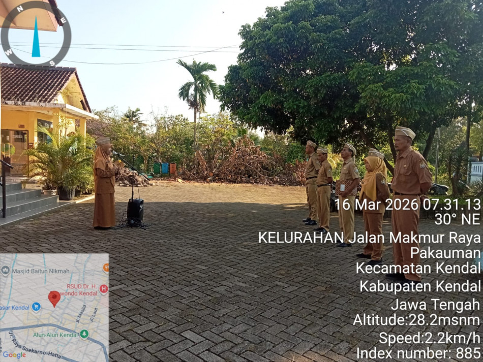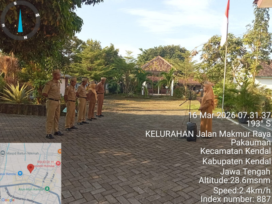 Senin, 16 Maret 2026 dilaksanakan apel pagi sebagaimana biasanya di Halaman Kelurahan Pekauman Kecamatan Kendal. Pembina apel Lurah Pekauman yang diikuti oleh seluruh perangkat Kelurahan Pekauman.