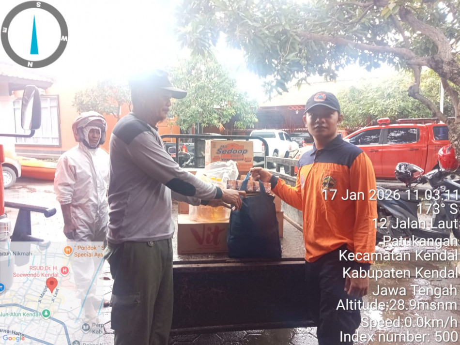 Dalam kegiatan tersebut, Dinas Sosial Kab.Kendal, relawan Palang Merah Indonesia (PMI) dan BPBD Kab.Kendal memberikan bantuan menyalurkan menu makanan bagi warga terdampak. Sejumlah menu yang dimasak di dapur umum antara lain telur dadar, orek tempe, tahu, mie bihun, nasi putih, serta sayur. Ndan MUHYI juga tampak sesekali ikut mengaduk tumisan untuk oreg tempe dan telur dadar di atas wajan panas.