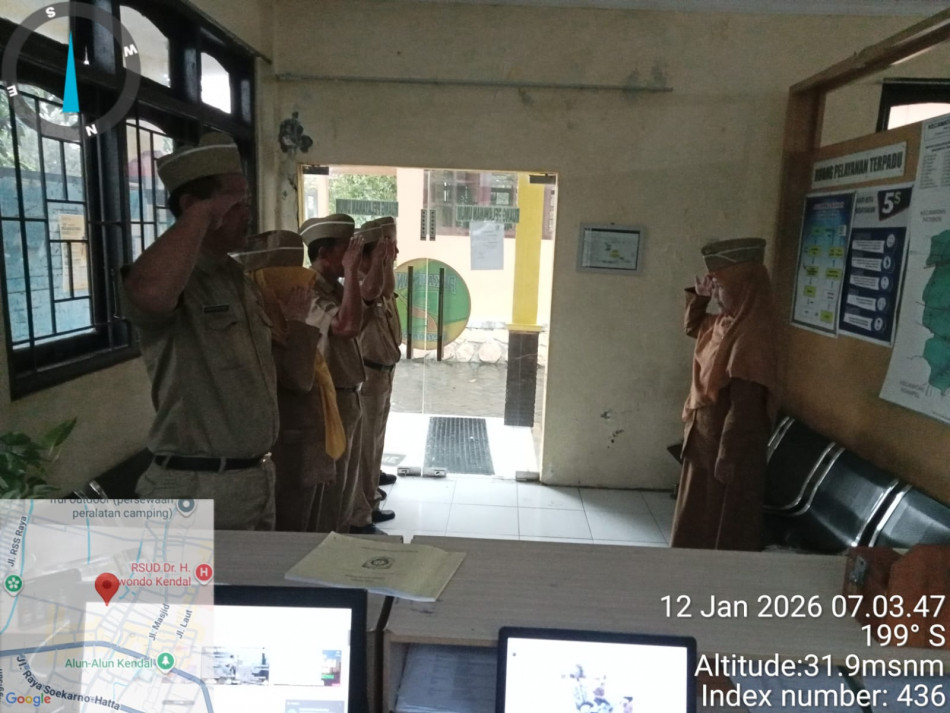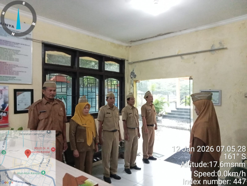 Dikarenakan suasana masih mendung disertai hujan gerimis sejak pagi hari ...pelaksanaan apel pagi perangkat Kelurahan Pekauman dilaksanakan di dalam ruang pelayanan umum. Pemimpin apel oleh ibu Lurah Pekauman dan komandan apel saudara Ahmad Rizal Annas. Ditutup dengan bacaan Doa bersama utuk mengawali aktivitas pada hari ini, semoga Allah SWT. memberikan kekuatan lahir batin untuk melakukan tugas dalam melayani masyarakat Kelurahan Pekauman Kecamatan Kendal.